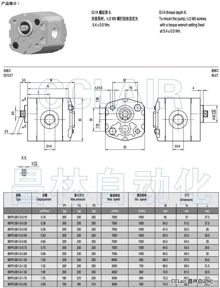 BKP0.5B1-D-0.19,BKP0.5B1-D-0.26,BKP0.5B1-D-0.38,齒輪泵