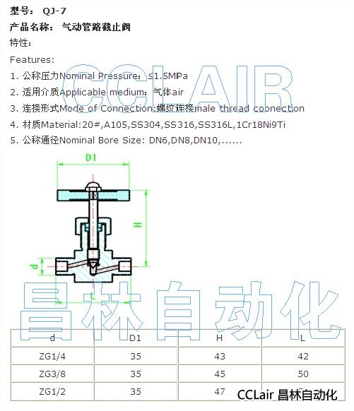 QJ-7,氣動(dòng)管路截止閥