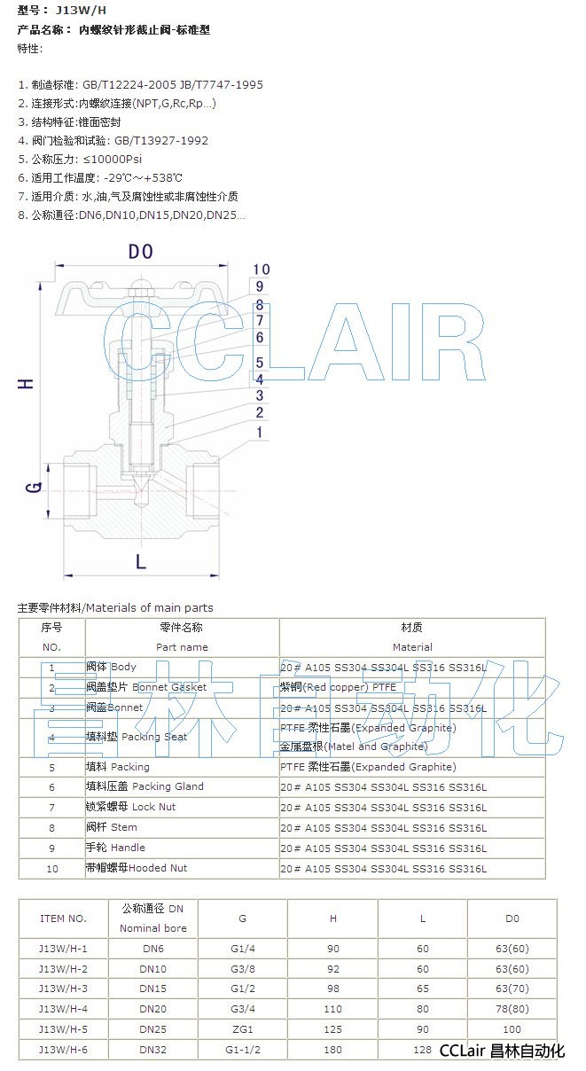 J13W-1,J13W-2,J13W-3,J13W-4, J13W-5,J13W-6, 內(nèi)螺紋針形截止閥-標(biāo)準(zhǔn)型