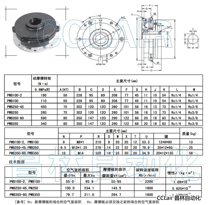 PWB100-2,PWB100,PWB250-45,PWB250,空壓(水冷型)通軸式制動器