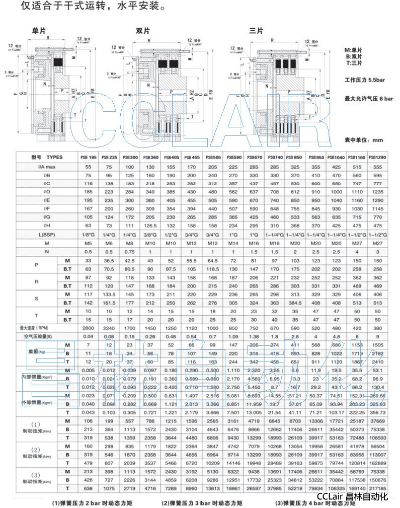 PSB195,PSB235,PSB300,PSB360,PSB405,PSB455,空壓彈簧制動(dòng)器(氣動(dòng)釋放)