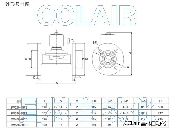 2W250-25FB,2W350-35FB,2W400-40FB,不銹鋼法蘭二位二通直動式電磁閥(常閉型)
