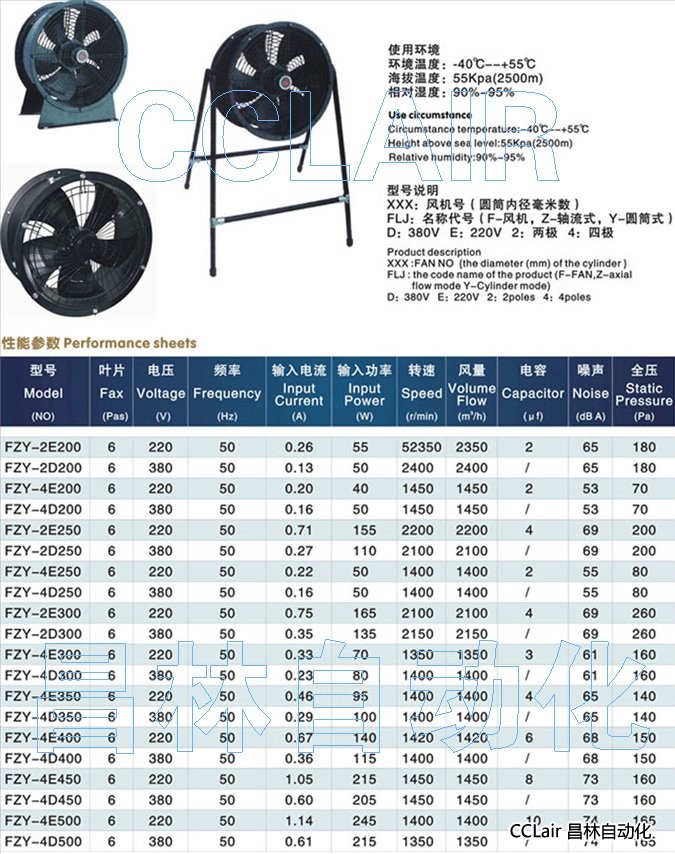 FZY-2E200,FZY-2D200,FZY-4E200,FZY-4D200,FZY-2E250,FZY-2D250,軸流風機