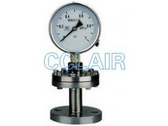 隔膜壓力表隔膜體形式及壓力范圍:MF:敞形式突面(≤25MPA)/ MG:工字形(≤6MPA)/ ML:螺紋式(≤60MPA)/ MZ:螺栓式(≤1~25MPA)/均質(zhì)機(jī)用(10~60MPA)/ MC:夾子式(01~2.5MPA