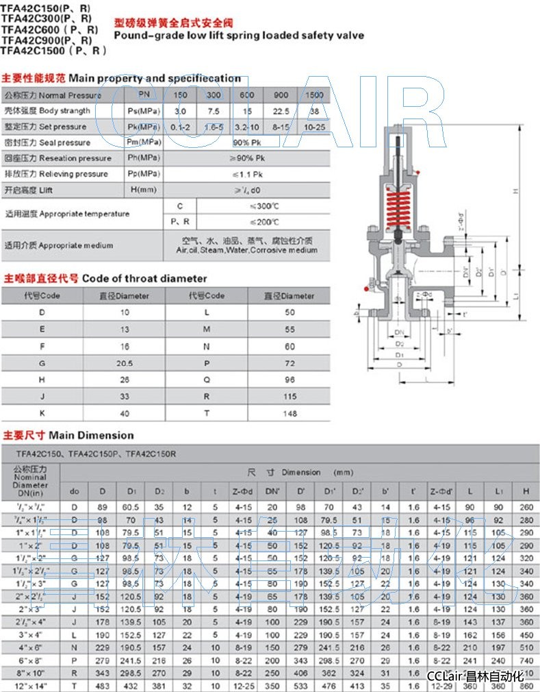 TFA42C150,TFA42C300,TFA42C150P,TFA42C300P,TFA42C150R,TFA42C300R,彈簧全啟式安全閥