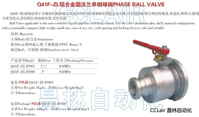 Q41F-ZL-50,Q41F-ZL-DN65,Q41F-ZL-DN80,Q41F-ZL-100,鋁合金圓法蘭單相球閥