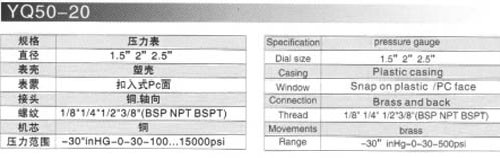 YQ50-20,壓力表