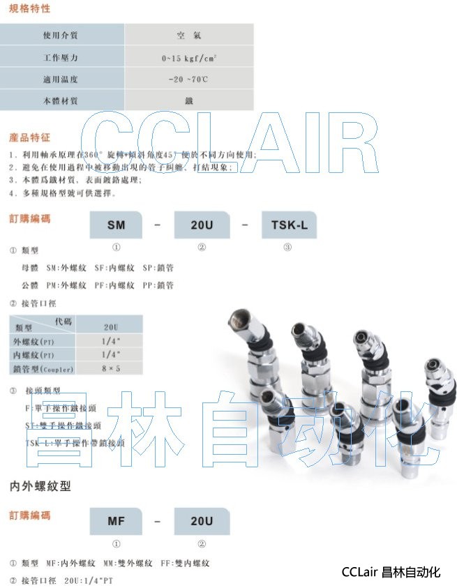 SM-20U,SF-20U,SP-20U,PM-20U,PF-20U,PP-20U,360°萬向旋轉接頭