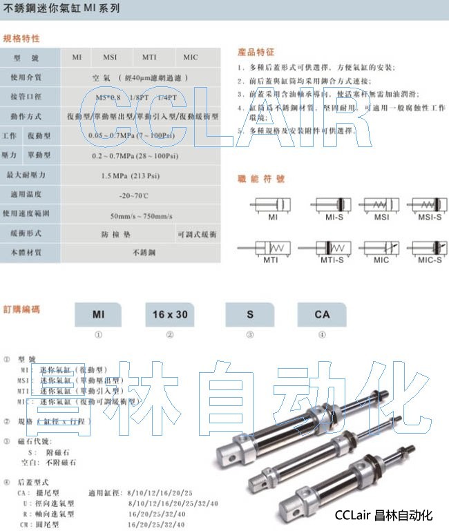 MI-10X10,MI-10X15,MSI-10X20,MSI-10X25,MTI-10X30,MIC-10X40,不銹鋼迷你氣缸