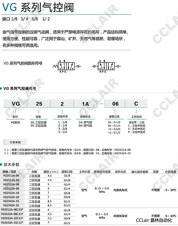 VG3511A-06C,VG3512A-06C,VG3512A-06E,VG3512A-06P,VG3522A-08C,VG3522A-08E,氣控閥