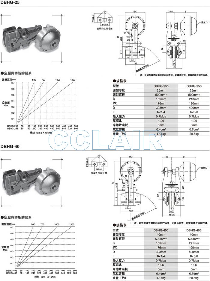 DBHG-255,DBHG-256,DBHG-405,DBHG-406,空壓碟式制動器