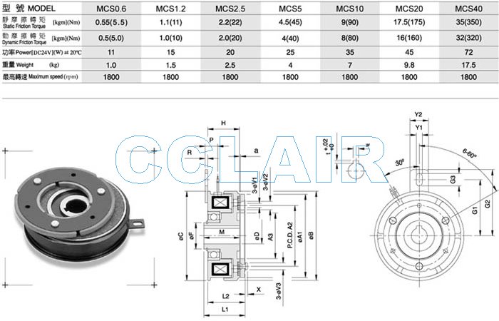 MCS0.6,MCS1.2,MCS2.5,MCS5,MCS10,MCS20,MCS40,電磁式離合器