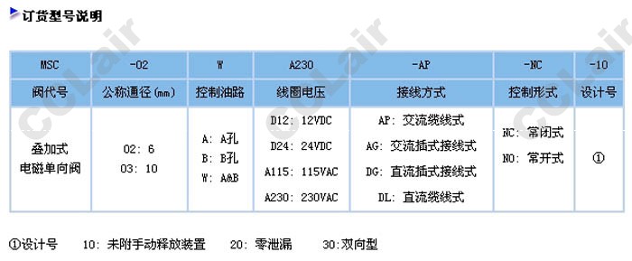 MSC-02B-D12-AP-NO-10,MSC-02W-D24-AG-NO-30,MSC-02W-A230-AG-NO-10,疊加式電磁單向閥
