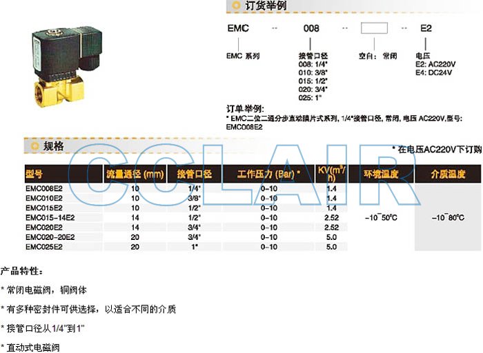 EMC008E2,EMC010E2,EMC015E2,EMC020E2,EMC025E2,EMC008E4,EMC010E4,直動式膜片式電磁閥