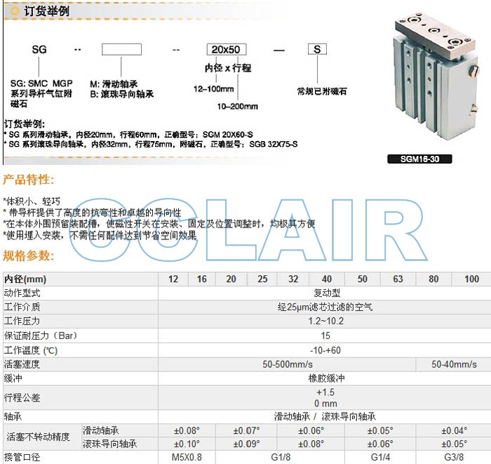 SGM12X50,SGM16X50,SGB20X50,SGM25X50,SGB32X50,SGB40X50,SGM50X50,SG63X50,導(dǎo)桿氣缸