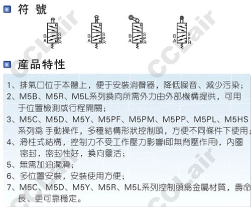 型號: M5B110-06,M5C110-08,M5D110-06,M5R110-08,M5L110-06,M5Y110,M5PM110-08,M5PP,M5PF,M5PL,M5HS,機械閥