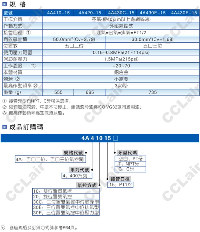 4A410-15-T,4A420-15-T,4A430C-15-T,4A430E-15-G,4A430P-15-G,4A430C-15-G,氣控閥