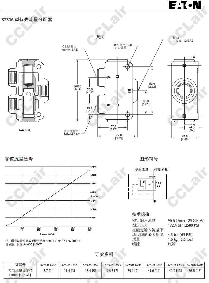 32306,32501,32700,32306-DAG,32306-DAH,32306-DAF,32501-DAF,威格士-Vickers,優(yōu)先流量分配器