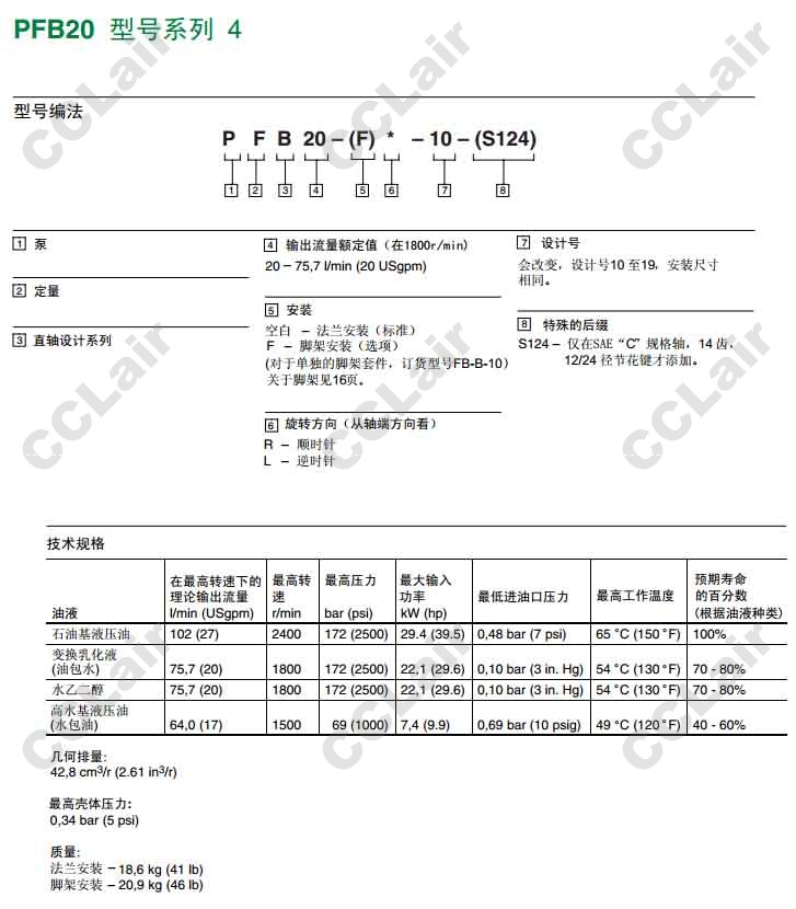 PFB5,PFB10,PFB20,PFB45,PFB5-FRY-22,PFB5-FLY-22,威格士-Vickers,開式回路定量柱塞泵