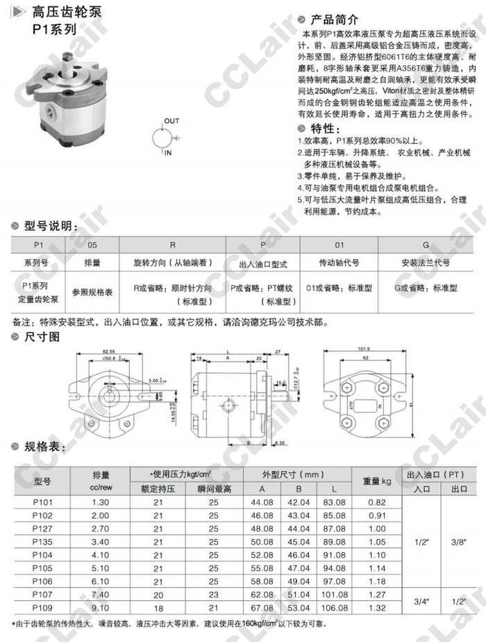 P101,P102,P127,P135,P104,P105,P106,P107,P109,P107RP01G,P109RP01G,高壓齒輪泵