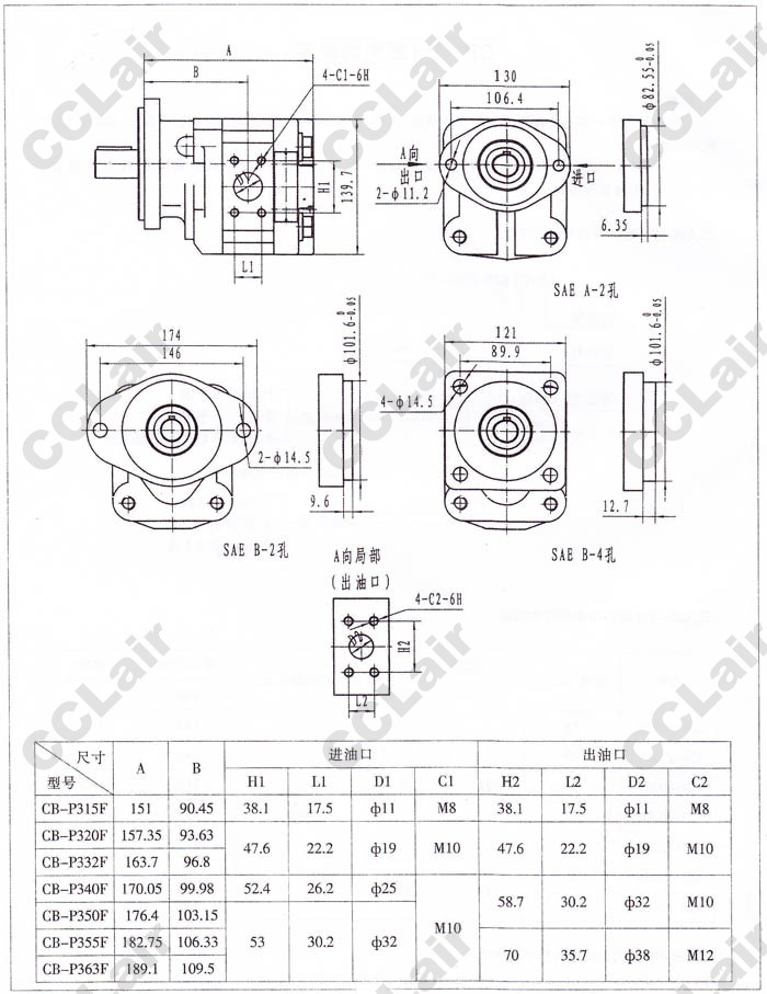CB-P315F,CB-P320F,CB-P332F,CB-P340F,CB-P350F,CB-P355F,CB-P363F,齒輪泵,YUCIYUKEN