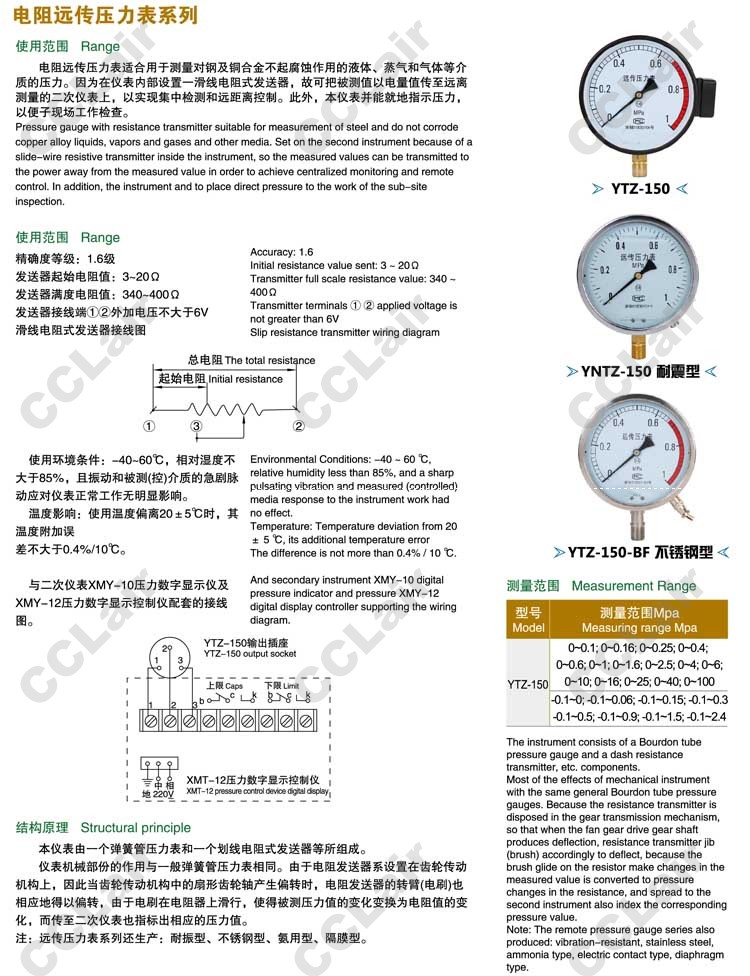 YTZ-150,YNTZ-150,YTZ-150-BF,電阻遠(yuǎn)傳壓力表,無錫昌林