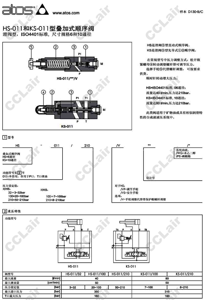 HS-011,HS-011/32/VF,HS-011/100/VF,HS-011/210/VF,HS-011/32/VS,阿托斯ATOS疊加式順序閥
