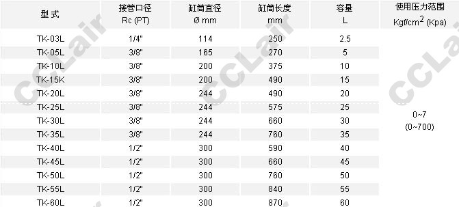 氣立可(chelic),TK-03L,TK-05L,TK-10L,TK-15L,TK-20L,TK-25L,TK-30L,TK-35L,TK-40L,TK-45L,儲氣筒