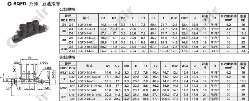 SQFD6-4-01,SQFD6-01,SQFD8-6-02,SQFD8-02,SQFD10-8-03,SQFD10-03,SQFD5/32-01,SQFD1/4-5/32-01,五通接管