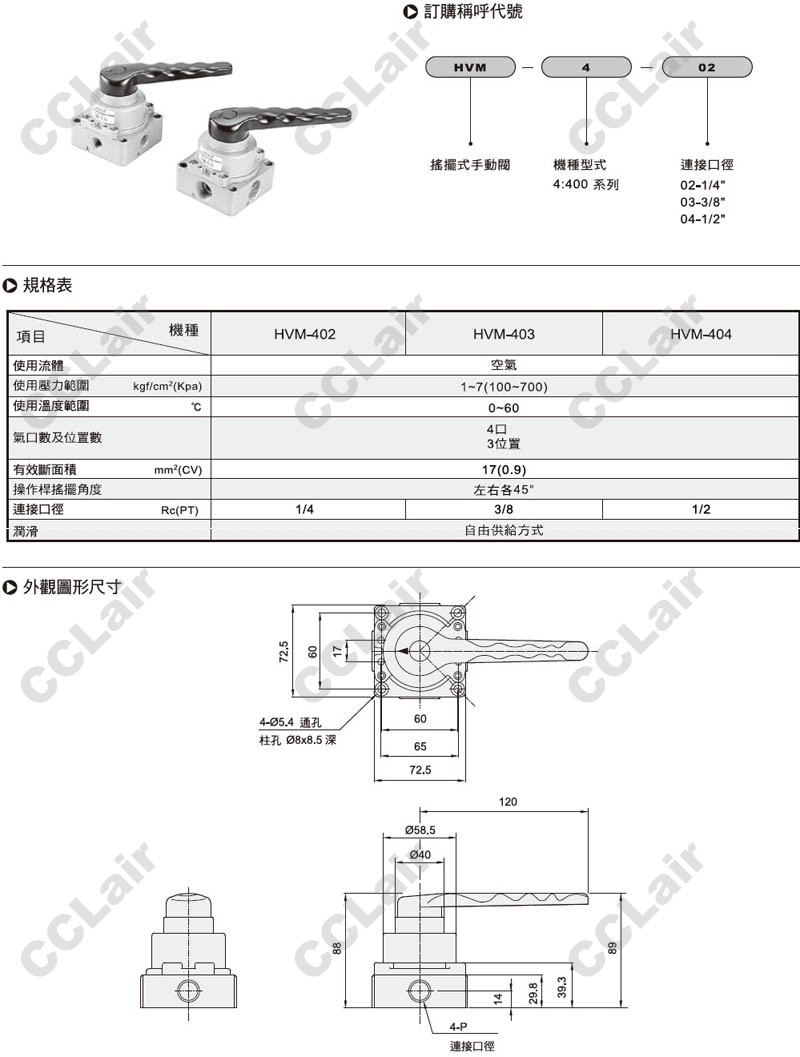 氣立可(chelic),HVM-402,HVM-403,HVM-404,搖擺式手動閥