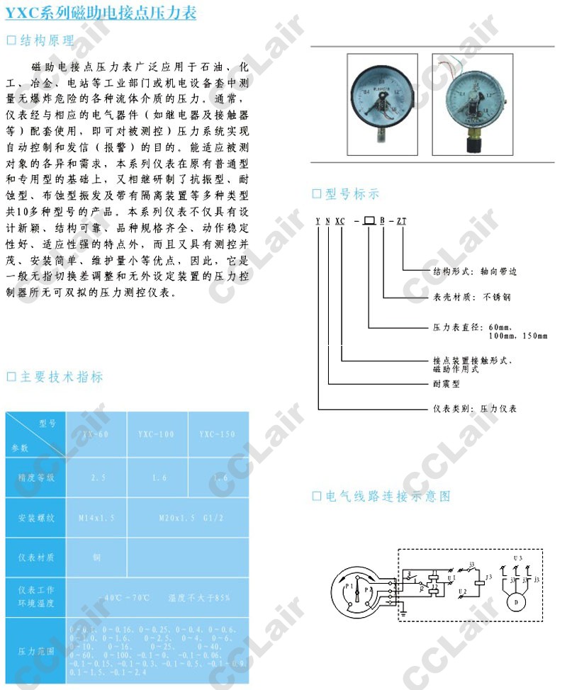 YX-60,YXC-100,YXC-150,磁助電接點壓力表,CCLair