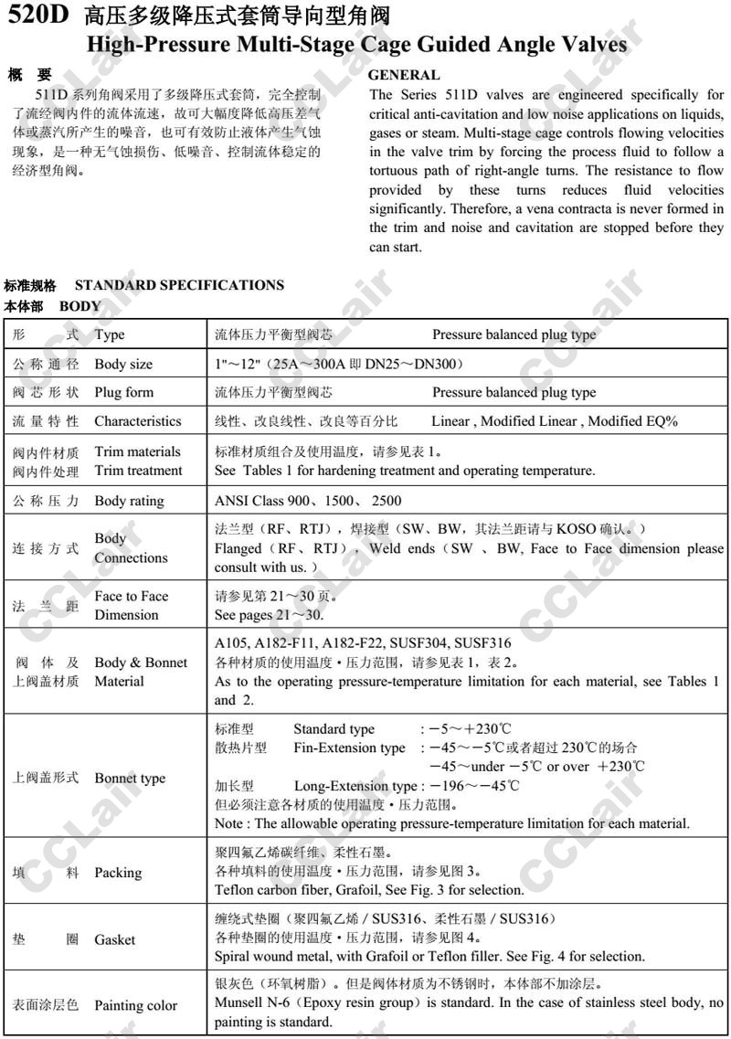 520D-5200LA,520D-6300LA,高壓多級降壓式套筒導向型角閥