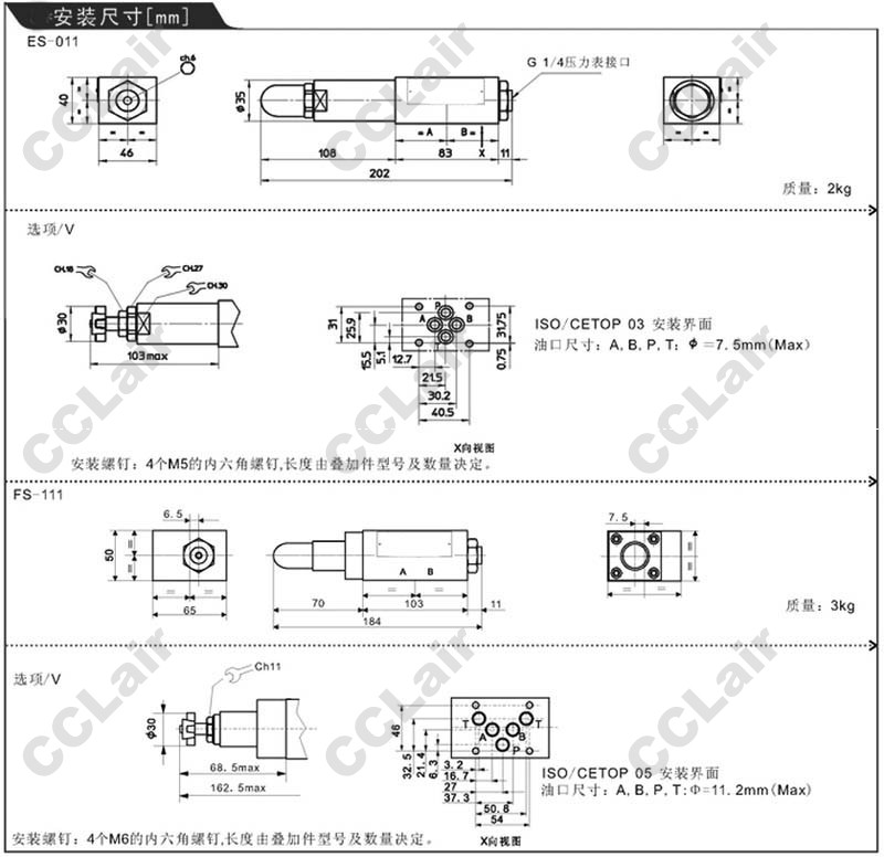 ES-011/32,ES-011/100,ES-011/210,FS-111/100,FS-111/210,疊加式順序閥 |