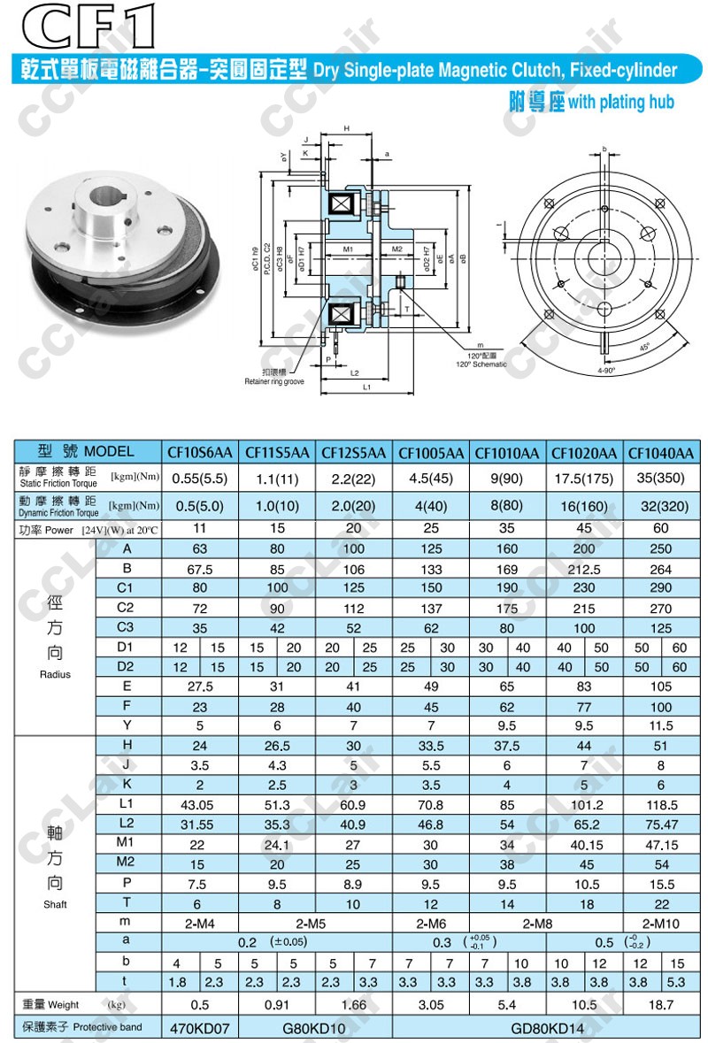CF10S6AA,CF11S5AA,CF12S5AA,CF1005AA,CF1010AA,CF1020AA,CF1040AA,電磁離合器 |