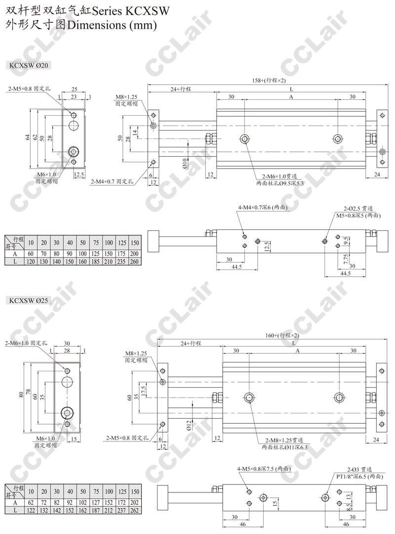 KCXSWM10,KCXSWM15,KCXSWM20,KCXSWM25,KCXSWM10-100,KCXSWM15-75,KCXSWM25-50,ARK雙缸氣缸