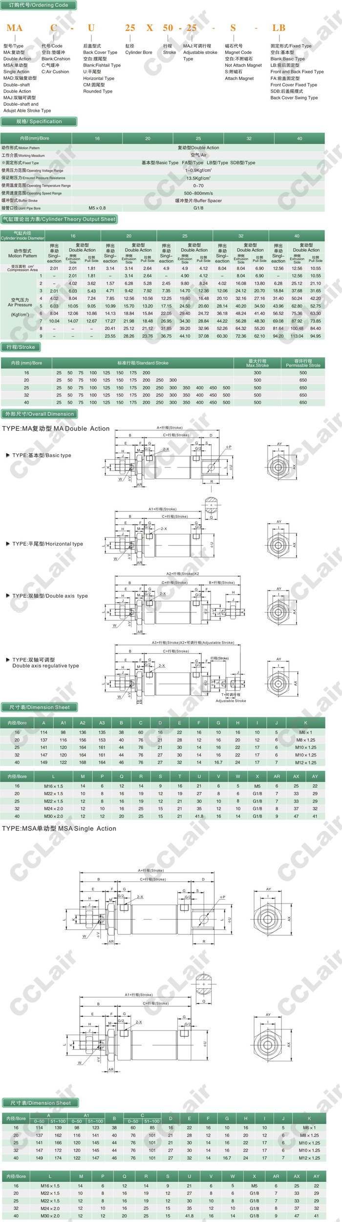 MSA-CM20×125,MSA-CM20×150,MSA-CM20×175,MSA-CM20×200,MSA-CM20×250,MSA-CM20×300,MSA-CM25×25,MSA-CM25×50,