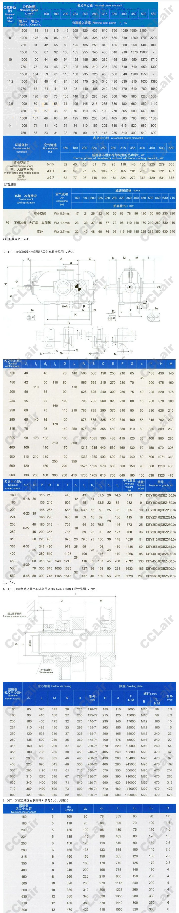 5.DBY、DBYK型減速器公稱(chēng)功率PA見(jiàn)表17,熱功率PGl見(jiàn)表18.