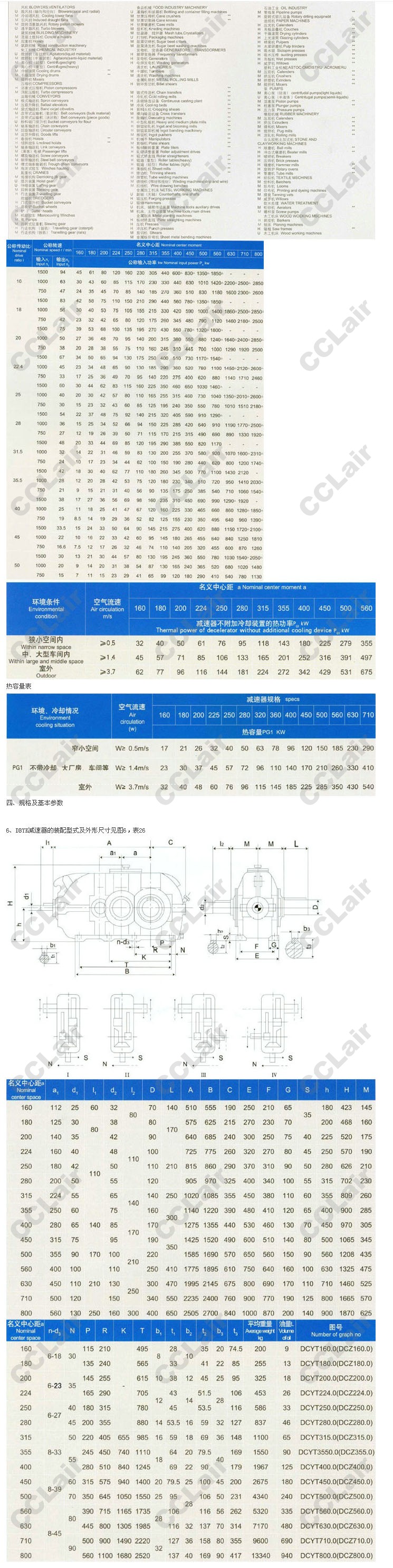 查表20,DCYK280齒輪箱安裝于大車間時(shí)的許用功率為91KW>Pct經(jīng)上述計(jì)算,確定所選齒輪箱代號(hào)為DCYK280—IS.