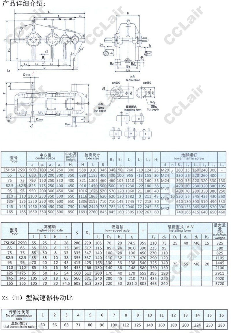 ZS50,ZS65,ZS75,ZS82.5,ZS95,ZS110,ZS125,ZS145,ZS165,圓柱齒輪減速機(jī)