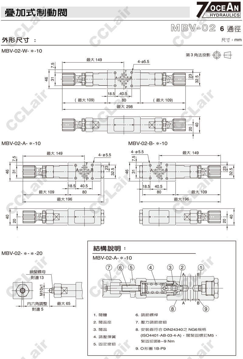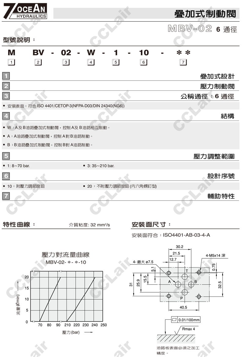 MBV-02-W,MBV-02-A,MBV-02-B,MBV-02-W-1-10,MBV-02-A-1-20,MBV-02-B-3-20,7OCEAN七洋疊加式壓力制動(dòng)閥