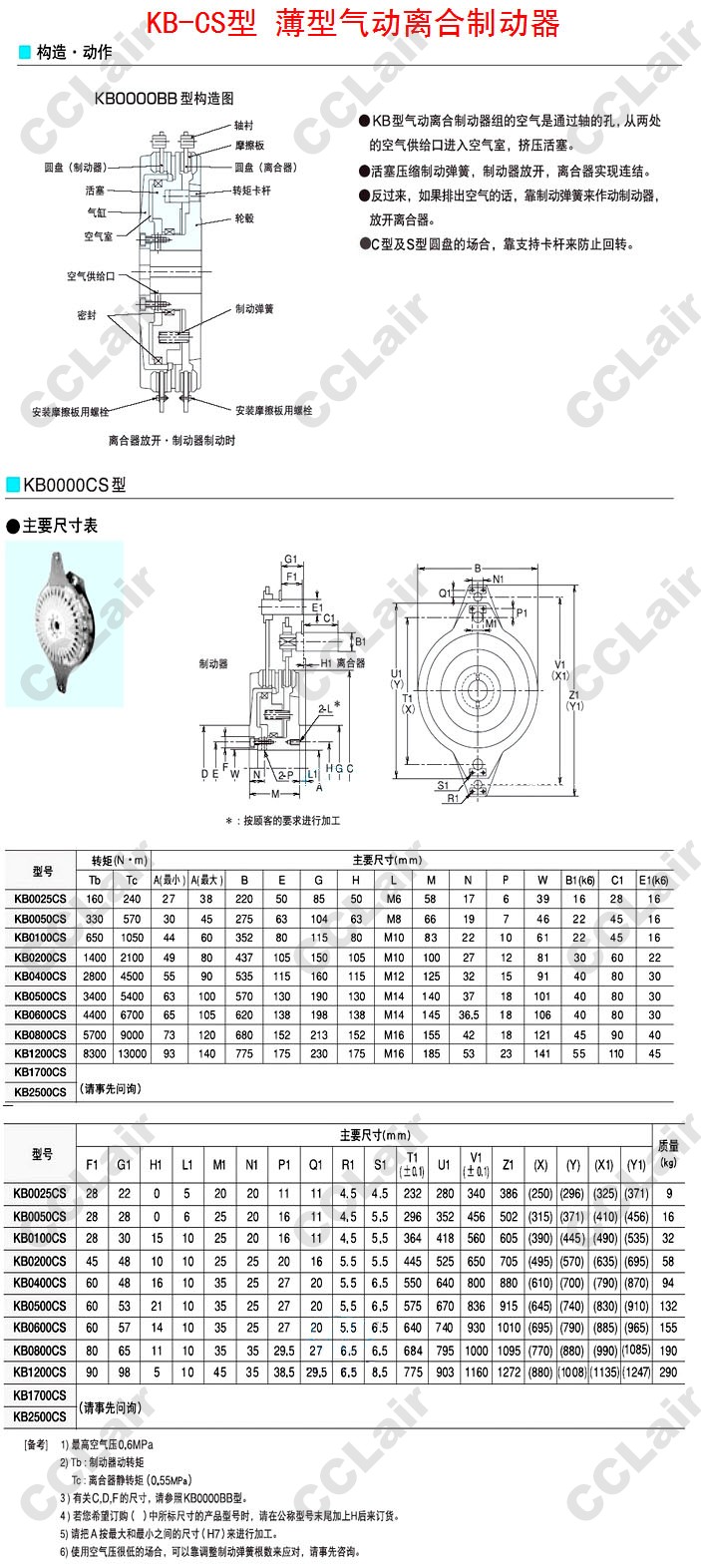 KB0025CS,KB0050CS,KB0100CS,KB0200CS,KB0400CS,KB0500CS,KB0600CS,KB0800CS,KB2500CS,薄型氣動離合制動器 |