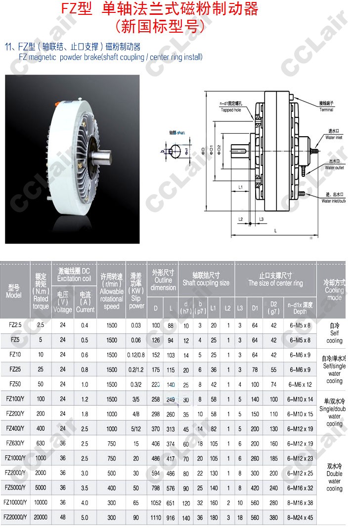 FZ2.5,FZ5,FZ10,FZ25,FZ50,FZ100/Y,FZ200/Y,FZ400/Y,FZ630/Y,FZ5000/Y,FZ-80,法蘭式磁粉制動(dòng)器