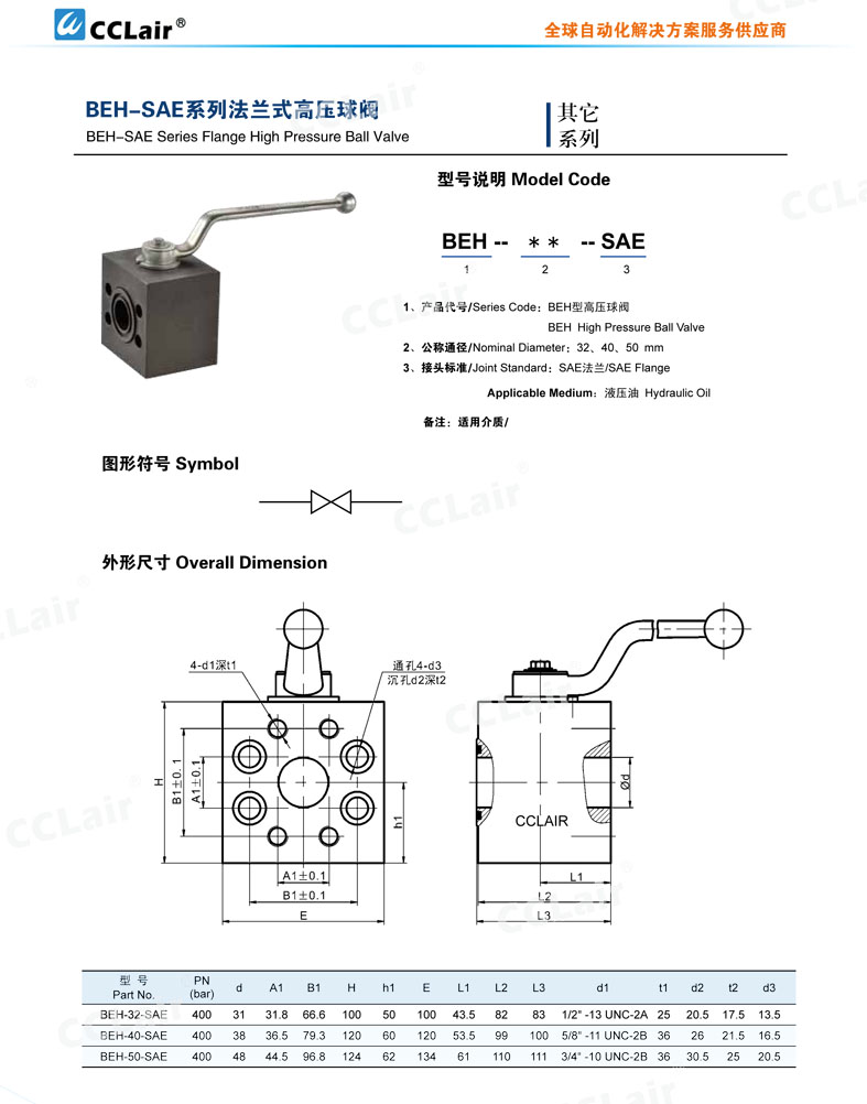 BEH-32-SAE,BEH-40-SAE,BDH-50-SAE,法蘭式高壓球閥