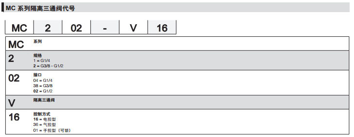 MC104-V16,MC138-V16,MC102-V36,MC204-V36,MC238-V01,MC202-V01,camozzi隔離三通閥