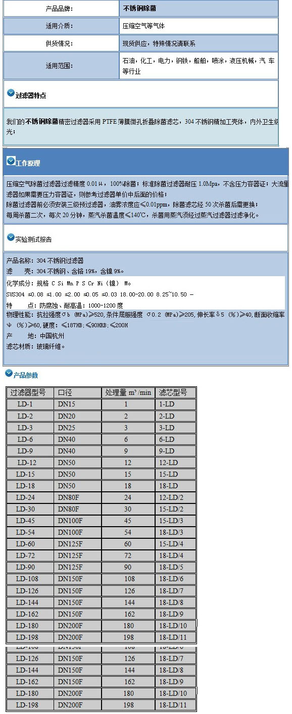 LD-1,LD-2,LD-3,LD-6,LD-9,LD-12,LD-24,LD-30,LD-45,LD-54,LD-60,LD-72,LD-90,LD-108,精密過濾器