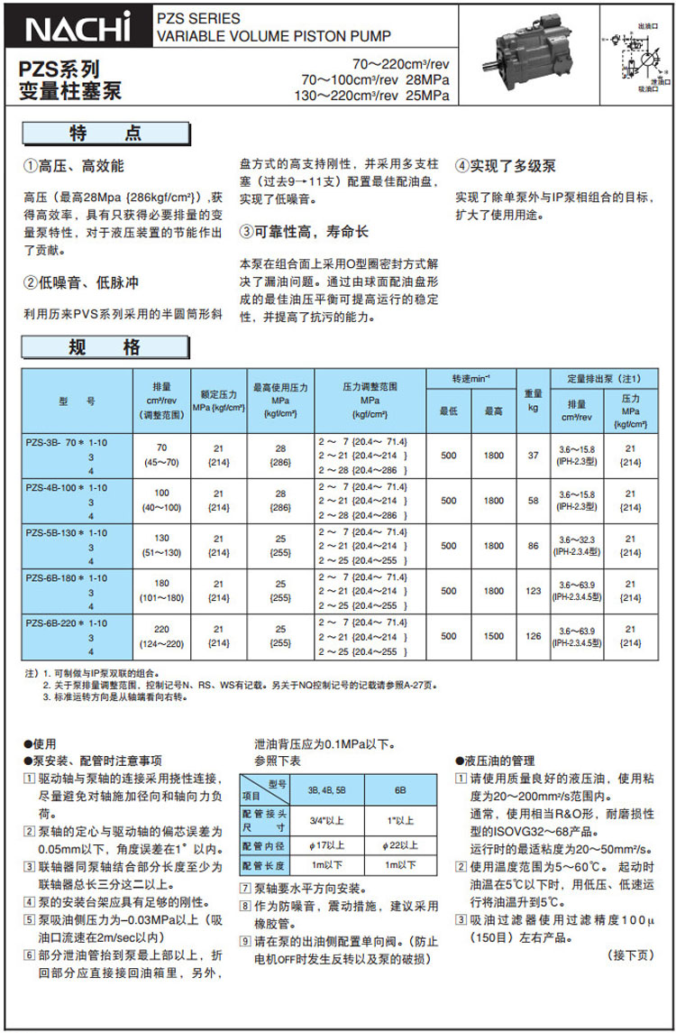 PZS-3B,PZS-4B,PZB-5B,PZS-6B,PZS-6B-220W4S4-10,PZS-5B-130N1Q4-10,NACHI變量柱塞泵 |