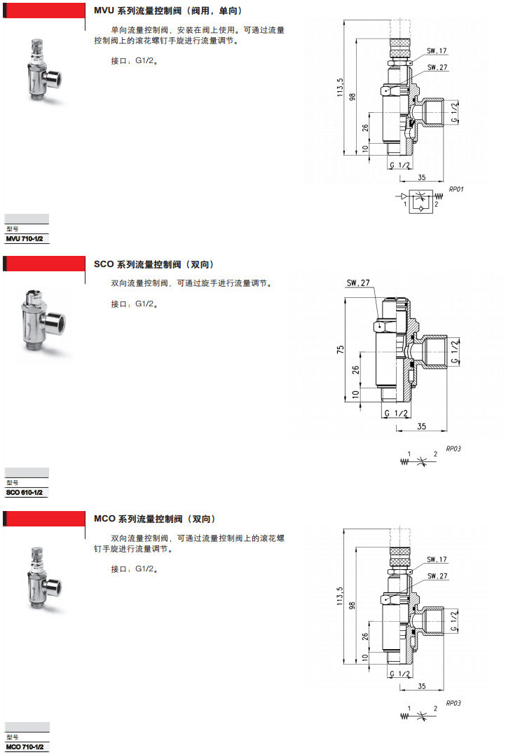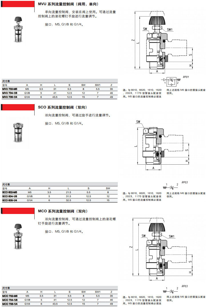 MCU602-M5,MVU602-M5,MCO604-M5,SCU710-1/8,SVU602-1/8,SCO708-1/4,camozzi流量控制閥