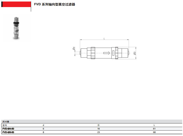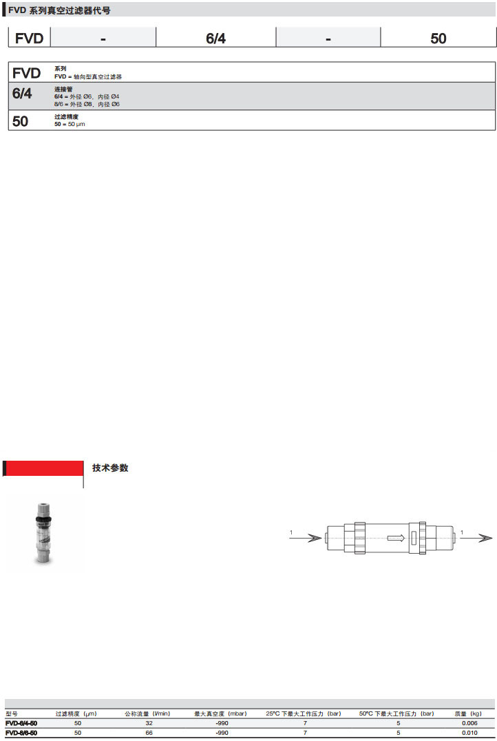 FVD-6/4-50,FVD-8/6-50,camozzi軸向型真空過濾器