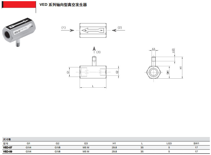 VED-07,VED-09,camozzi軸向型真空發(fā)生器