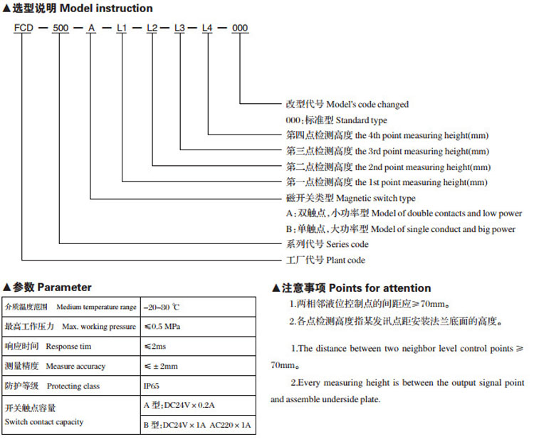 FCD-500,浮球式液位繼電器